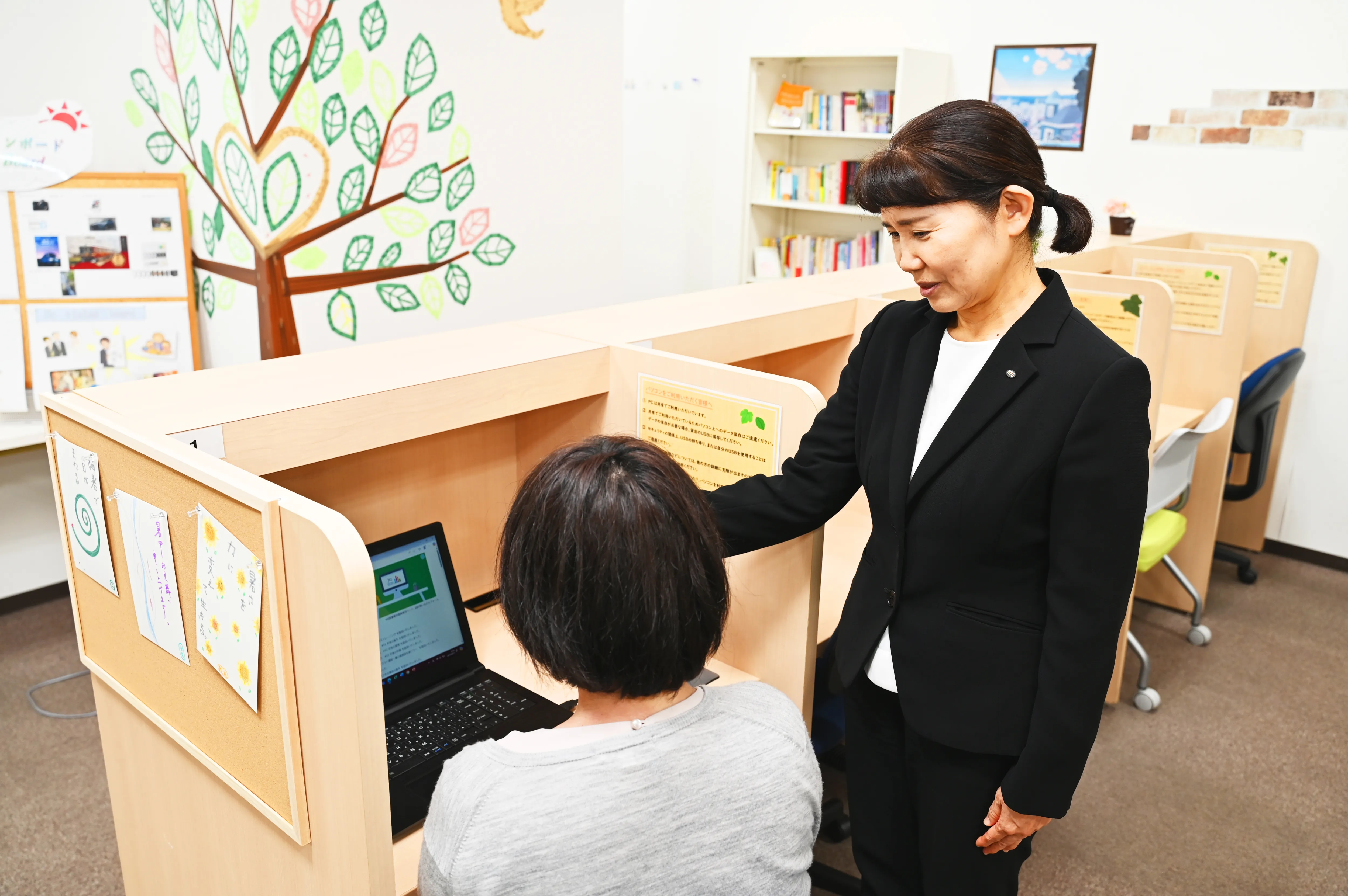 個別相談室です。不安なことや心配なこと、就職活動の相談など、ゆっくりお話ができる場所です。
