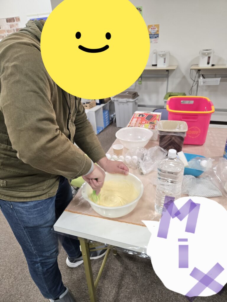 みんなで役割分担しておいしいベビーカステラをつくりましたよ